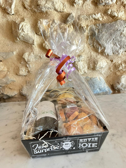 Le Château Réveillon vous a confectionné (avec amour bien sûr) plusieurs types de paniers garnis remplis de produits locaux de petits producteurs, pour gâter votre proches, que ce soit votre famille, vos amis, vos collègues ou bien vos employés. Alors n'attendez plus !